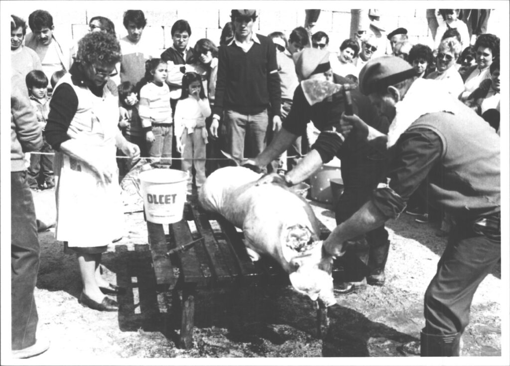 El matar porc casolà, en el qual intervenien no només la família, sinó els veïns i familiars propers, ja que la tasca s’havia d’enllestir ràpidament. Això generava una contrapartida amb un àpat tots junts i un obsequi (tast) de la carn manipulada.